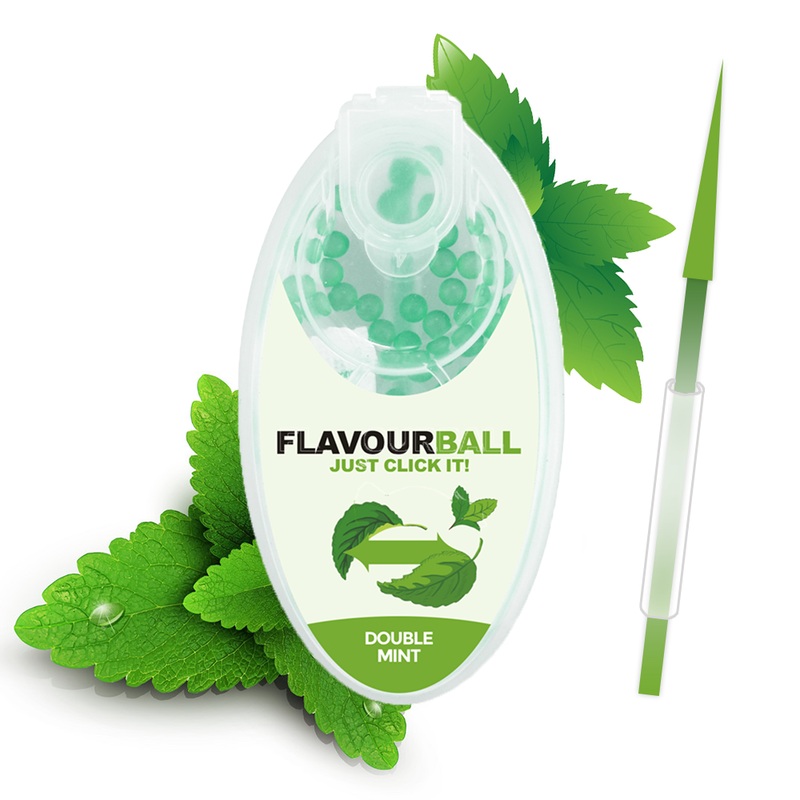 100 stk Flavour Balls med DoubleMintduft og smag i praktisk plastik pod, som importren skriver "F et dobbelt skud af mint" Brug dem hvor du nsker kraftigMintduft eller smag - kuglen knkkes og aromaen optages i ethvert sugende emne og afgives langsomt til o