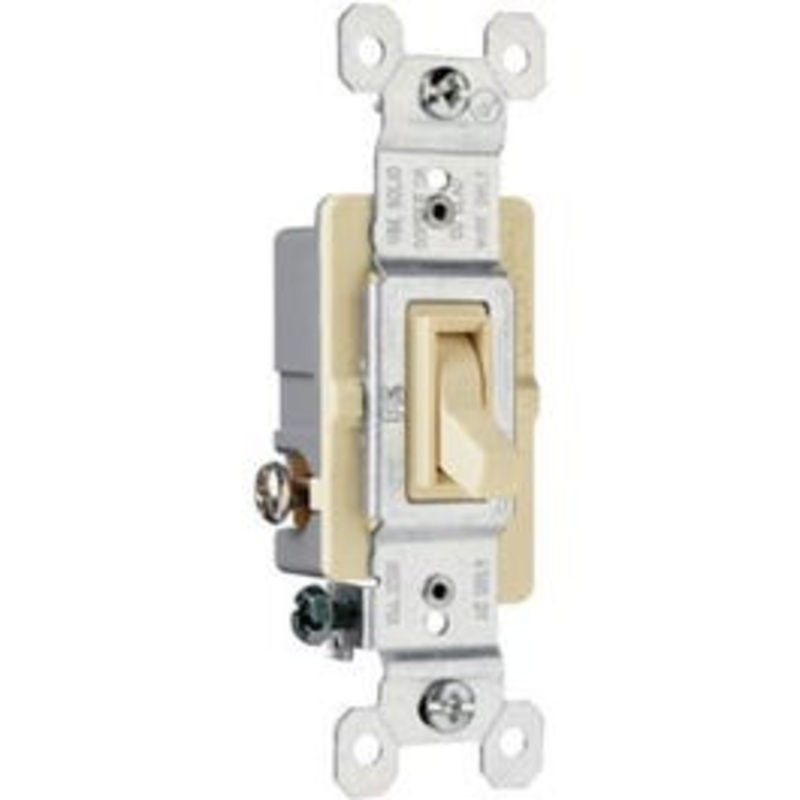 15A, 120V, Ivory, Grounded, Standard 3 Way Toggle Switch, UL, CSA, Smooth Quiet Action, Side & Speed Wire, High Impact Resistant Construction Extra Long Strap, Bulk.