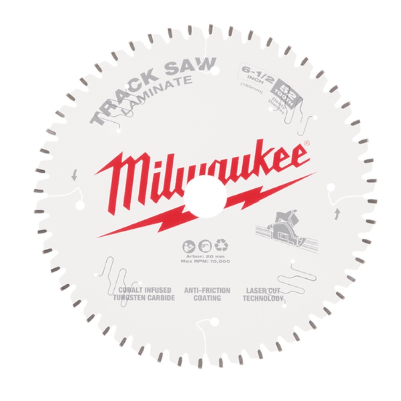 Milwaukee's Track Saw Blades are designed to deliver accuracy and finish quality cuts in all Track Saw applications. The 52T Laminate blade with Triple Chip Grind (TCG) tooth design ensures smooth finish and longer life in harder materials like laminate fl