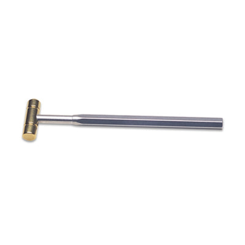 This 2 oz. hammer features a superb quality solid brass head threaded onto an anodized aluminum handle. A special compound is used to assure the head cannot release. The handle is hex-shape to prevent slipping. Overall length measures out to be 8″.