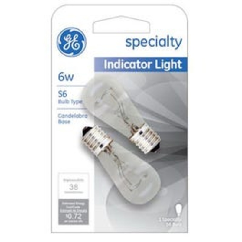 This 6 watt S6 shaped incandescent bulb is clear and has a candelabra base. It has a 1,500-Hour rated life and an overall length of 1-7/8".