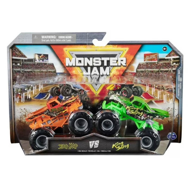 Get ready for epic showdowns with the official Monster Jam 1:64 scale diecast trucks 2Packs! Every 2Pack features matchups of the most popular and soughtafter Monster Jam monster trucks like Grave Digger vs. Avenger MaxD vs. Sonuva Digger Zombie vs. Whiplash and more! Each Monster Jam truck in the 2Pack has awesome details and graphics. With official BKT Tires stylized rims and authentic chassis these lean mean Monster Jam machines embody the style and swagger of their reallife counterparts! Unleash the Monster Jam action right out of the box and create your own stunts and jumps like youve seen in the live shows! Then prepare for the ultimate Monster Jam trucks faceoff! Add all of the 2Packs to your collection (toys each sold separately) and host your very own Monster Jam event with your friends! Monster Jam monster truck toys are the perfect gifts for kids ages 3 and up. Experience headtohead action with the official Monster Jam 1:64 scale diecast 2Packs!