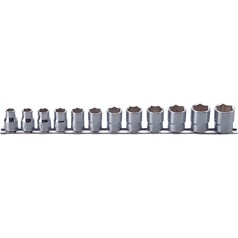 Input Drive Size:3/8"Drive Shape:SquareRail Length:300mmType:Socket Set on RailOutput size:8-19mmNo. Pieces:12Opening:6 pt.Sizes included:8, 9, 10, 11, 12, 13, 14, 15, 16, 17, 18, 19