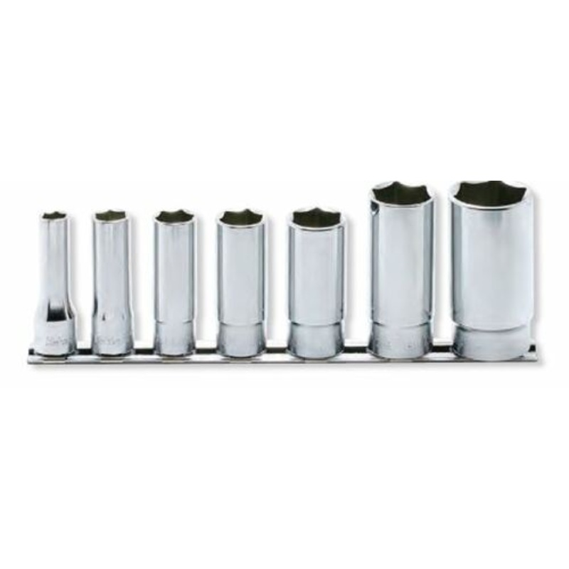 Input Drive Size:3/8"Drive Shape:SquareLength:200mmType:12 Point Deep Whitworth Socket Set on RailOutput Sizes:1/8, 3/16, 1/4, 5/16, 3/8, 7/16, 1/2Includes:7 Whitworth Sockets on RailOpening:12pt
