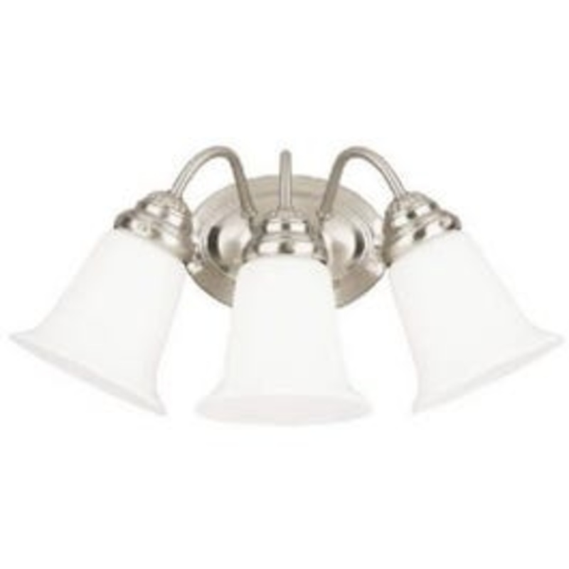 3 Light Wall Bracket, Brushed Nickel Finish, Opal Glass Shades, Length 17-1/4-Inch, Height 7-7/8-Inch, Extends 8-1/4-Inch, Uses 3 Clear Standard Base Bulbs, A-19, 60W Maximum.