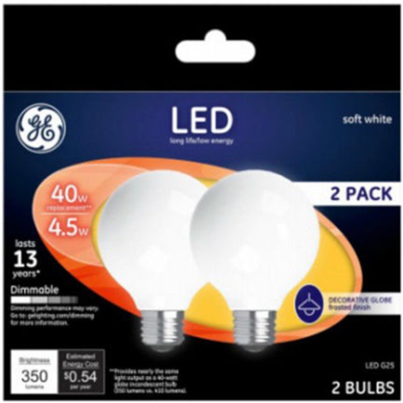 4.5W Medium Soft White LED Frosted G25 Globe 40W Equivalent.
