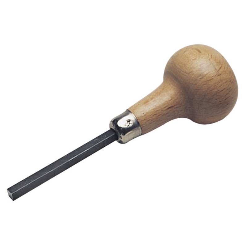 This handy tool has a polished steel tip set in a comfortable wooden handle. Its used to bend prongs while setting stones; measures 4″ in length.