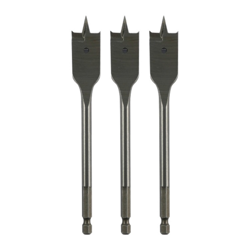 Abracs Flat wood drill bits are manufactured with extra hardened steel, featuring a central point and 2 raised spurs to keep the bit straight during drilling. A precision ground cutting face for high performance and a quick chuck fitting for fast and east bit change throughout any drilling job.