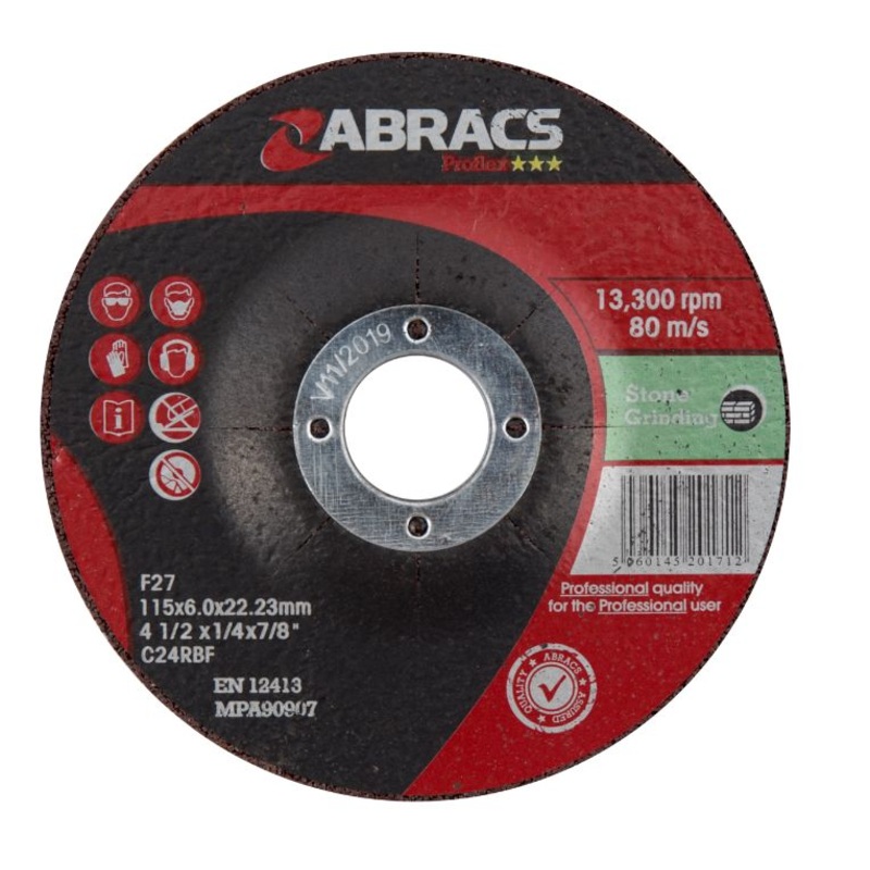 Abracs Proflex Stone Grinding Discs are an incredibly good value product with an exceptional cost per cut ratio. Manufactured to European quality standards, long life and high performance cutting with minimal effort required. Proflex discs have been developed for extended performance smooth and consistent grinding stone Suitable for use on a wide variety of stone cutting applications including Natural Stone, Concrete, Bricks & Tiles. Suitable for use on an angle grinder.
