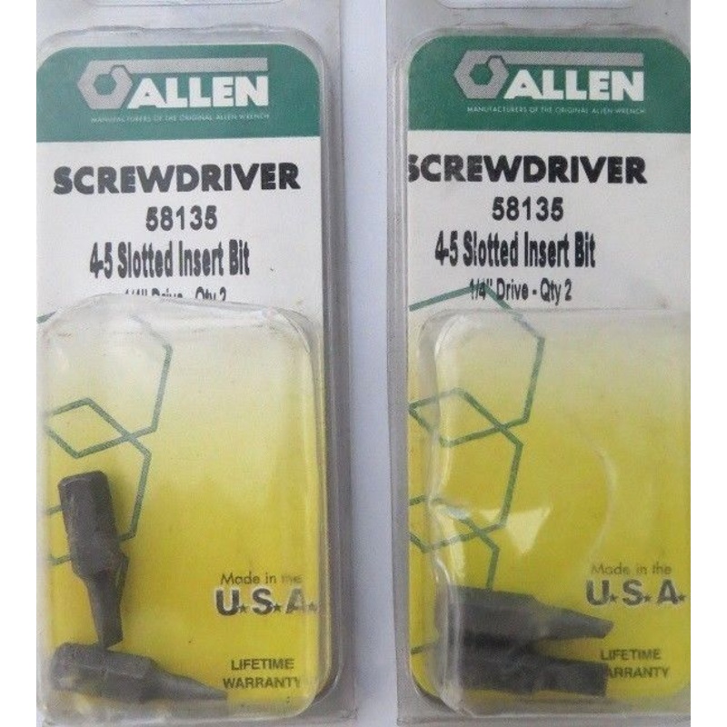 Allen 58135 2 PK 4-5 Screwdriver Slotted Insert Bits 1/4″ Drive 2 Packs USA