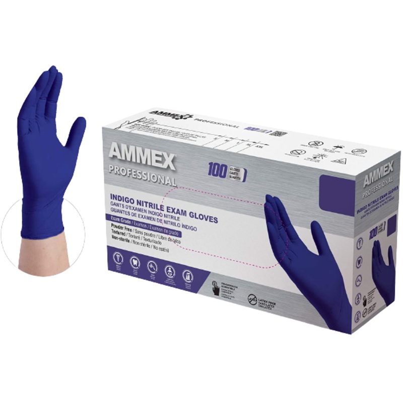 Ammex Powder Free Exam Grade Indigo Nitrile Gloves – Box Of 100