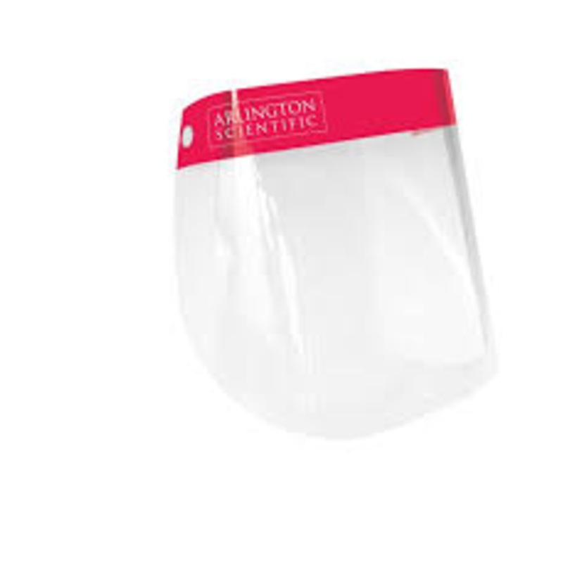 - 9" x 13"- Disposable- Soft stretchable headband- NOT made with rubber latexArlington Scientific's face shield offers eyes, nose, and mouth protection from aerosols, sprays, and splatters. The distortion free anti-fog film allows for maximum visibility. A