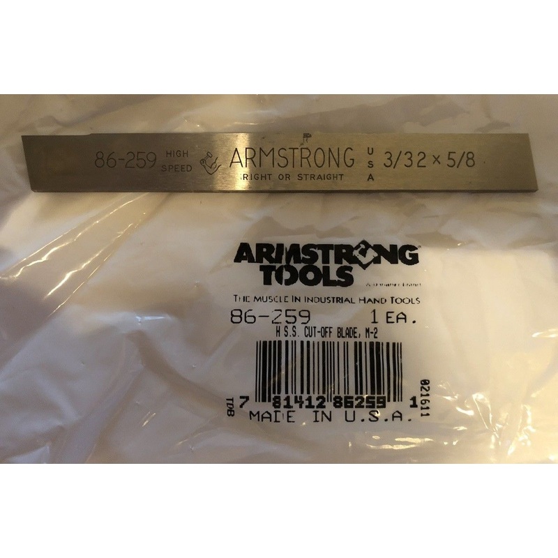 Armstrong 86-259 HSS Cut-Off Blade, M-2 USA3/32" x 5/8"Right or StraightIf you have a question about one of ourproducts, please email us. We check our email regularly, and try to getquestions answered as quickly as possible.If your package arrivesdamaged o