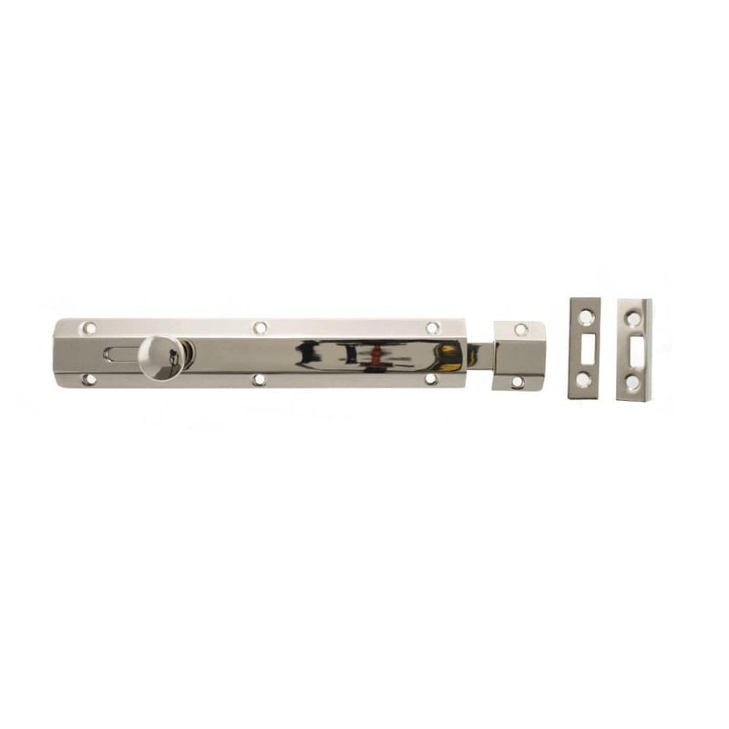 Atlantic Solid Brass Surface Door Bolt 8" - Pol. Nickel High-quality durable finish focused Surface Bolts! Along with every stunning lever, should be a complete suite of complimentary ironmongery. Whether it be matching hinges, a designer door stop or simp