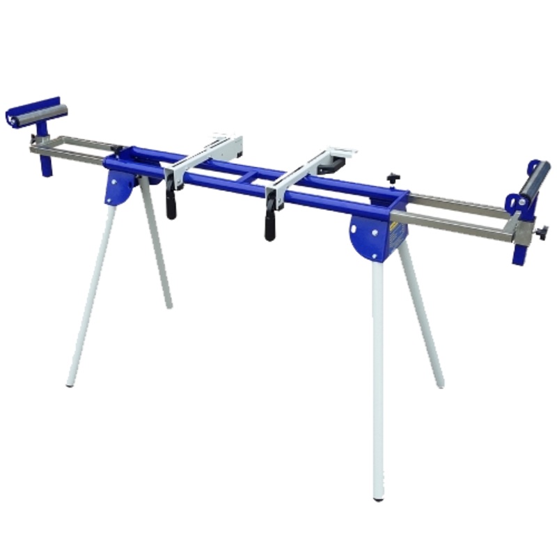 Incredibly strong yet incredibly light is the best way to describe this new model. The legs quickly fold down, without the need for any tools, and are made from round tube to keep the weight down. There are two roller supports, one at each end, which are adjustable to prvide complete support for work pieces up to 2 metres in length. There is also a flip-up stop attached to each roller which speeds up repeat cuts.