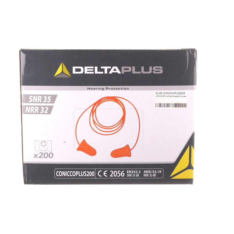 Delta Plus Conic Plus Foam Earplugs, Corded, Box of 200 pairs Individually WrappedMade of polyurethane foam, these earplugs feature a comfortable, ergonomic design. The DELTA EASYFIT integrated system allows for easy insertion in the ear canal. Pairs are p
