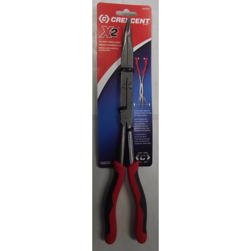 Crescent PSX201C X2 Long Reach Bent Nose PliersCrescent X2 Long Reach Pliers are designed with double joints so that the jaws can open a greater distance than the handles for improved access in tight spots. They are manufactured from Alloy Steel that Resis