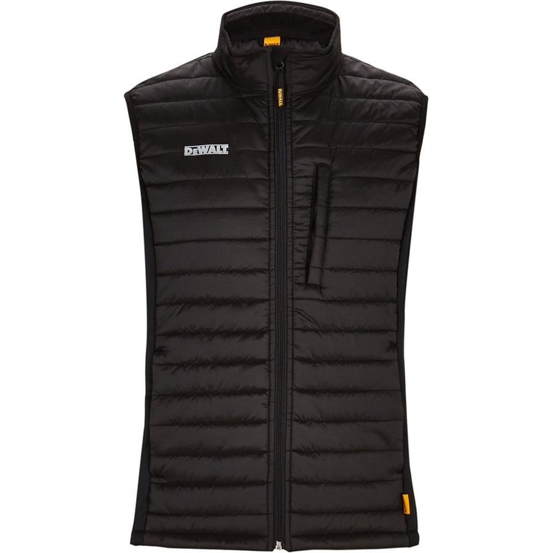This is the DEWALT Force body warmer, an adaptable overlayer (or underlayer, if you prefer) that works to keep you warm and dry. The nylon outer offers rip-resistant, showerproof coverage from the weather, while the polyester and taffeta lining ensures breathability. Stretch side panels, meanwhile, allow the wearer to move freely and naturally, so you can stay warm and dry without compromising on movement.