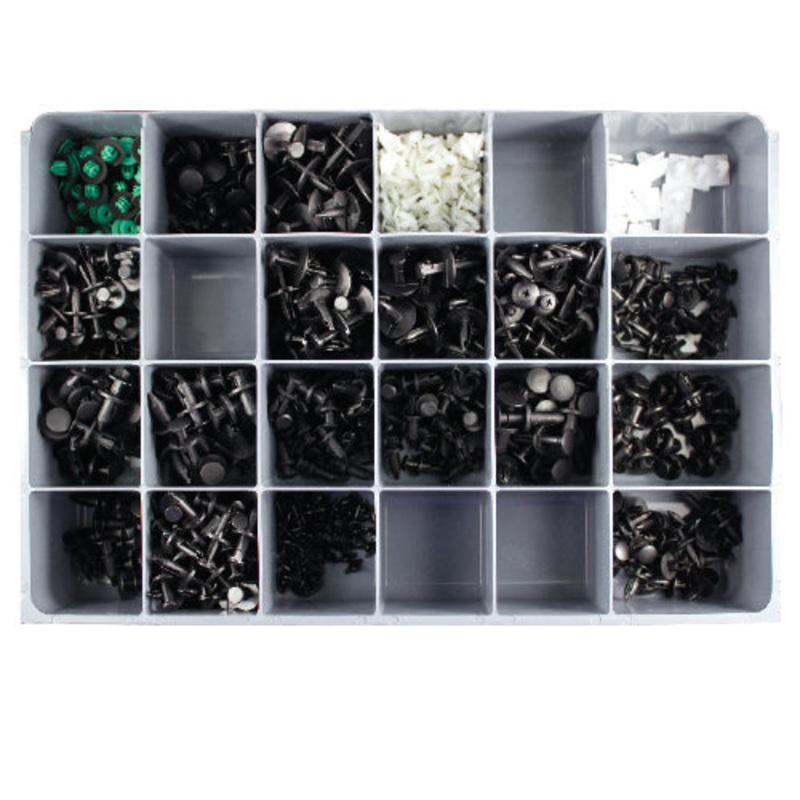 Domestic Retainers 690PCPackage Deal Contents:ARTICLE NUMBERDESCRIPTIONQUANTITY150120774GM Moulding Clip15195523024Large Box 24 Compartment For Organizational System Drawer119540001Plastic Sleeves For Schematics1150155494Chrysler Pin Drive Retainer20150155