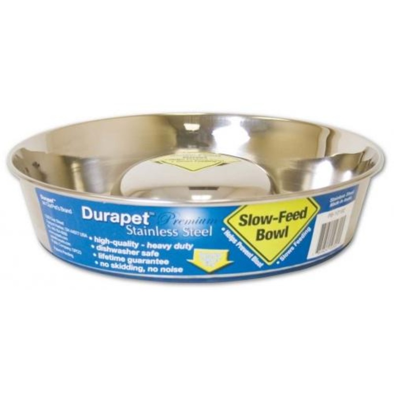 "Slow it down there, mister! Slow-Feed Bowls are available in small, medium and large sizes. Durapet Slow-Feed Bowls Durapet Slow-Feed Bowls are healthy for dogs because they slow down their eating, which improves digestion and nutrient absorption."