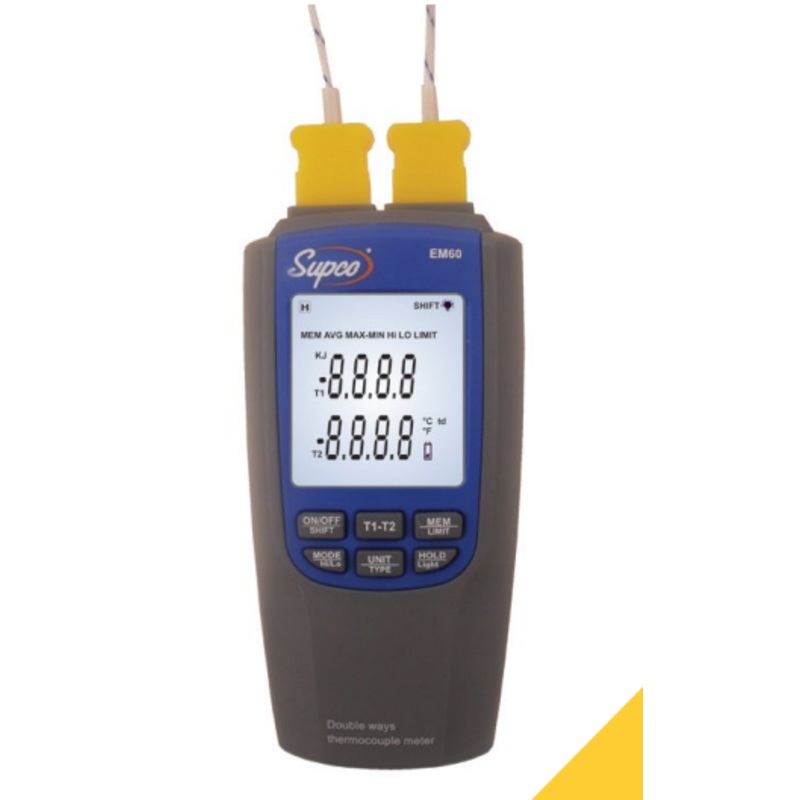 The Supco EM60 is a dual-channel (J/K) differential thermometer built for HVAC/R techs who need fast delta-T checks on coils, ducts, and line sets. It compares T1, T2, and T1-T2 in real time, so you can diagnose performance quicker and avoid call-backs fair dinkum, its a ripper for everyday service work.