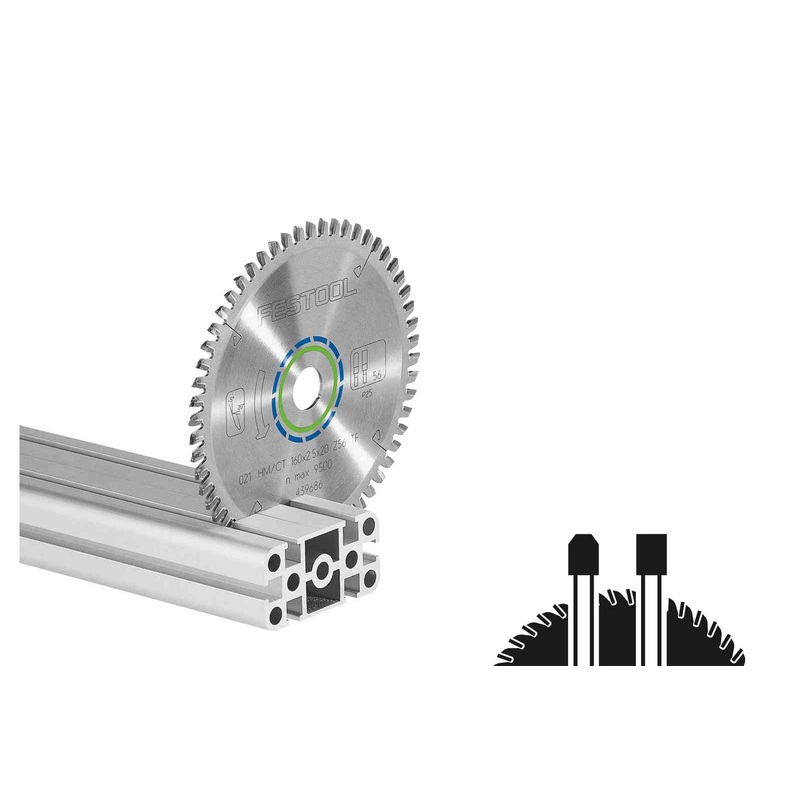 Fine-grain carbide-tipped circular saw blade with trapezoidal/flat tooth for maximum durability and long service life. Ideal for machining aluminium panels and profiles, as well as plastics.