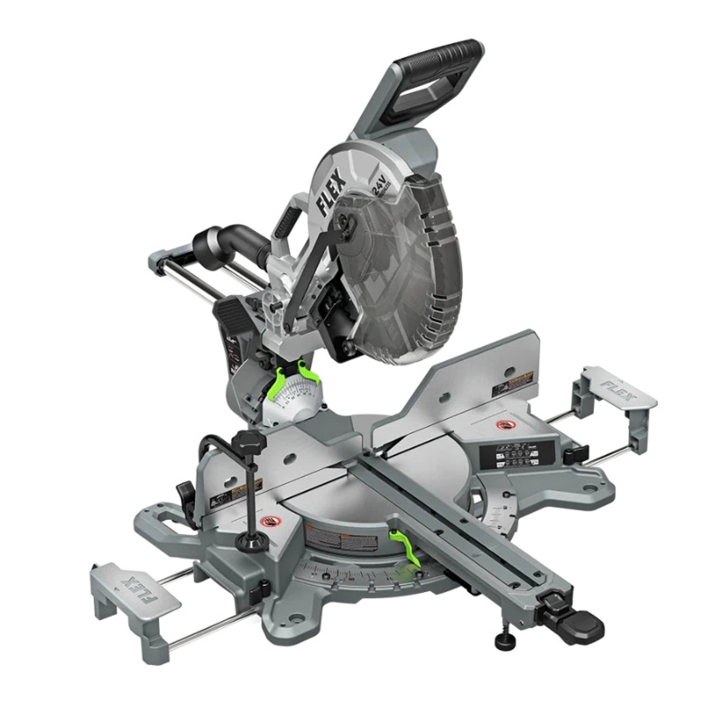 Breeze through finishing cuts with the FLEX 24V 12 Dual Bevel Sliding Miter Saw. This dual bevel sliding compound miter saw makes quick and easy bevel angle adjustments with its patented FASTSHIFT bevel lever. Its quick miter lock system sets the desired miter angle precisely while an LED shadow light aligns the blade to the cut line for ultimate accuracy. The 12-inch miter saw features a SPINDLE STOP shaft lock system for fast, easy blade changes and preventing inadvertent startups. An adjustable depth stop limits the depth of cut for dado and slot cuts, and table extensions expand from the sides of the base to support cutting longer materials like strips of crown molding. The sliding compound miter saw will make up to 630 crosscuts in 3-1/4-inch MDF with the included 10.0Ah Stacked Lithium battery on a single charge. This cordless miter saw dominates with the FLEX Stacked Lithium Advantage: unmatched battery power, runtime, and charging capability. The miter saw set includes the cordless miter saw, a 10.0Ah Stacked Lithium battery, 280W Rapid Charger, dust bag, 60T carbide blade, vacuum adapter, material clamp, and blade change wrench. Its all protected by the FLEX Limited Lifetime Warranty when registered within 30 days of purchase at registermyFLEX.com through December 31, 2024.