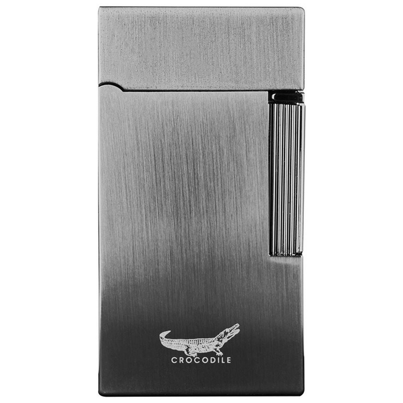 Elegant Formula Crocodile Wide Single Flamme Cigaret Lighter Der er 3 varianter Silver - er en hjglanspoleret chrome Grey - er en brstet chrome Black - er mat sort Billedet viser den brstede chrome. Individuelt pakket i Formula Crocodile gaveske Lighter st