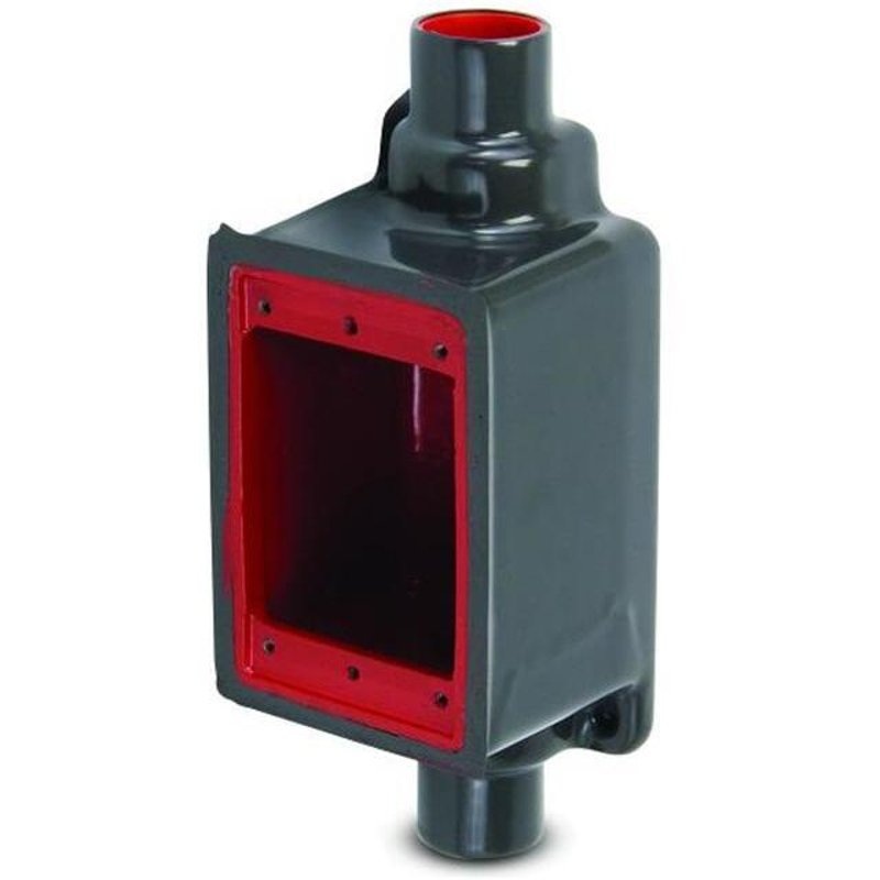 FSC Device Box, 1-Gang, Hub Size: 1 Inch. Box Depth: 1.69 Inch, Material: PVC Coated Steel, Dimension A (Inches): 1 Dimension B (Inches): 1.92 Dimension C (Inches): 1.69 Dimension D (Inches): 0.92 Nominal Weight (Pounds): 2.7 Color: BlackGangs: 1Depth: 1.6