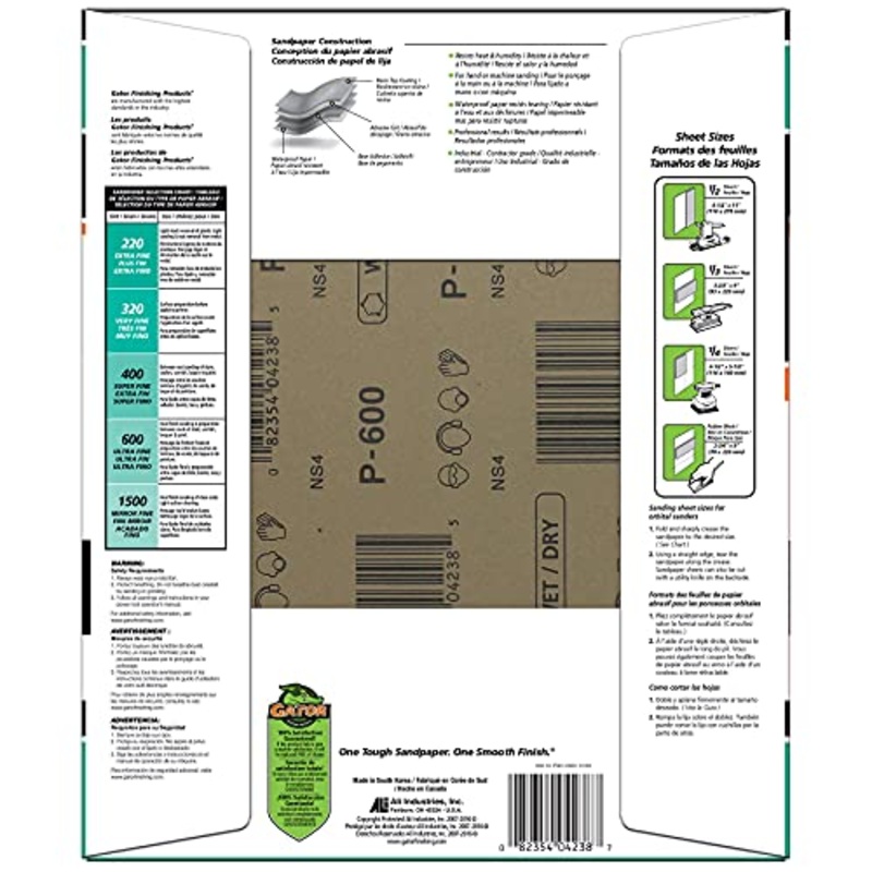 600 grit sheets are best for sanding between coats of paint and to wet sand primer coatsMade with a premium grain, which offers a higher cut rate and uniform scratch pattern which makes it perfect for achieving fine finishesWhen sanding wood, 600 grit wate