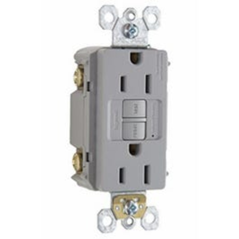 15A, 125V, 20A Feed Through Gray, Self Testing GFCI Receptacle.