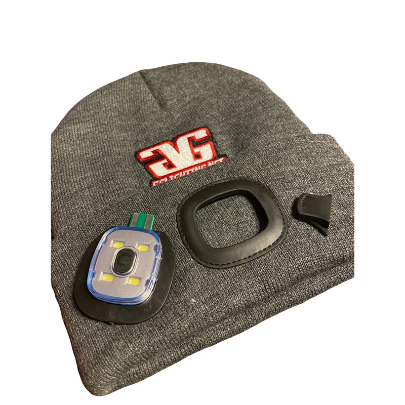 Beanie with built in headlamp. 4 powerful LED lights. Simply turn the light on with the press of a button on the front. High, medium & low setting controlled by the button. Easily pop the light out of the beanie and plug it into a USB port to charge. Sold