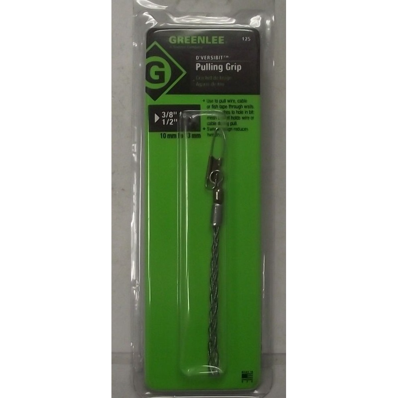 Greenlee 125 D'VERSIBIT Pulling Grip 3/8 to 1/2 USA Use to pull wire, cable or fish tape through walls. Grip attaches to hole in bit: mesh basket holds wire or cable during pull. Swivel design reduces twisting. Aeronca 150