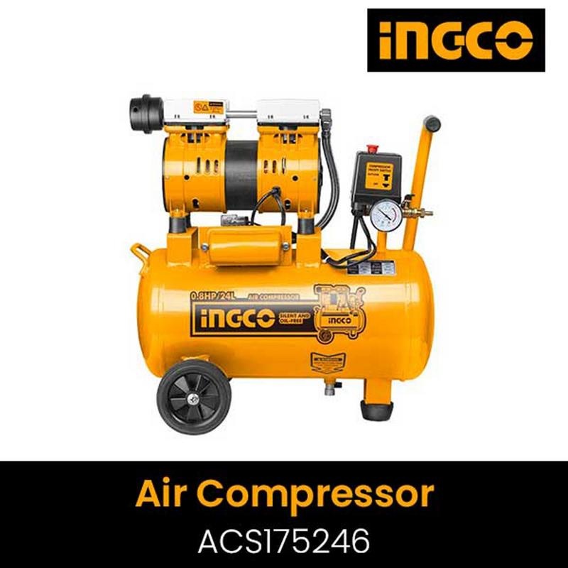 Description :Brand : IngcoIngco Item No : ACS175246Voltage : 220-240V~50HzInput power : 600W, 0.8HPTank : 24L(6.3Gal)Oil free systemNoise : 60dbCopper wire motorNo-load speed : 1440 rpmOperation pressure : max.8barPacked by carton boxProduct Video Link :ht