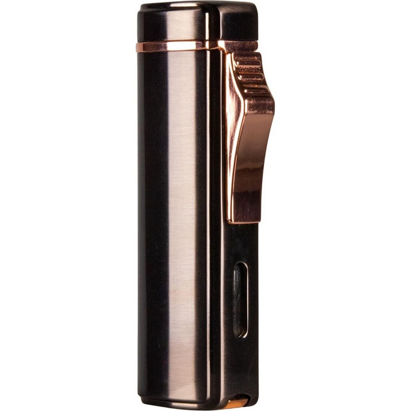 JEAN CLAUDE 3-flammet jet lighter mrkantracit satin / rosaguld med 7 mm rund frser og gasvisningsvindue.