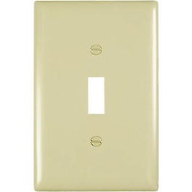 This Pass & Seymour trademaster jumbo nylon, one gang wall plate features one toggle switch opening, is virtually indestructible and is packaged with color matching mounting screws.