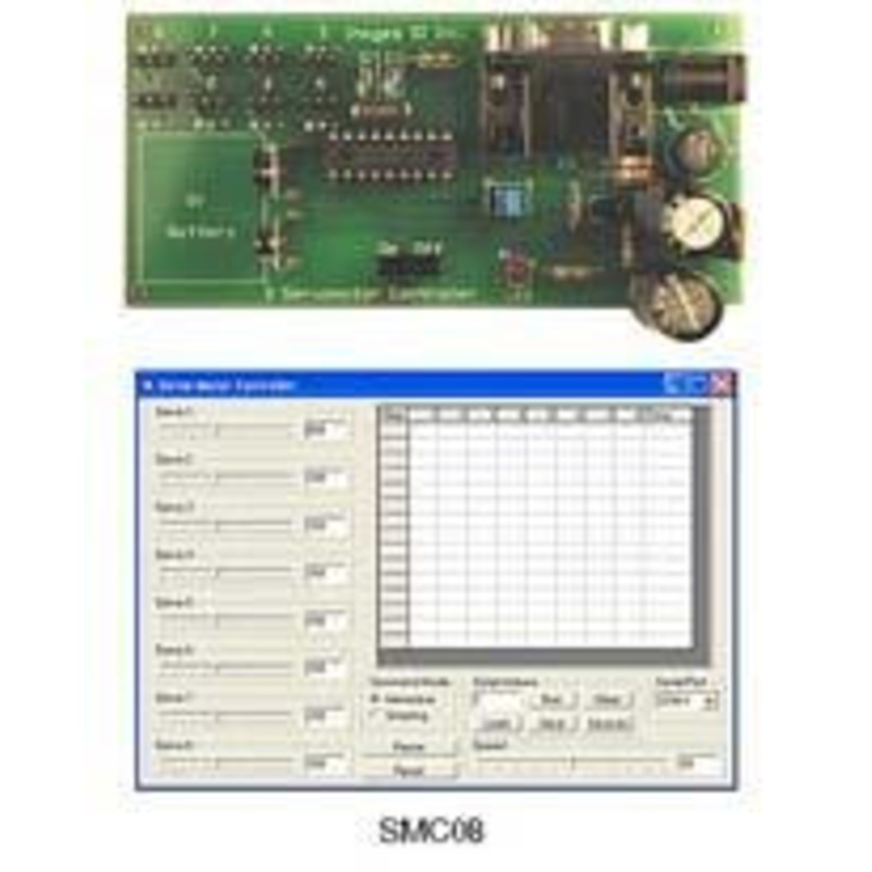 Allows control of hobby servomotors (Hitec/Futaba).Servomotors may be controlled manually via on-board switches (Models SMC04 and SMC05), or by a Windows program (CD included, updates available for download)PC Control: adjustable servomotor speed control.
