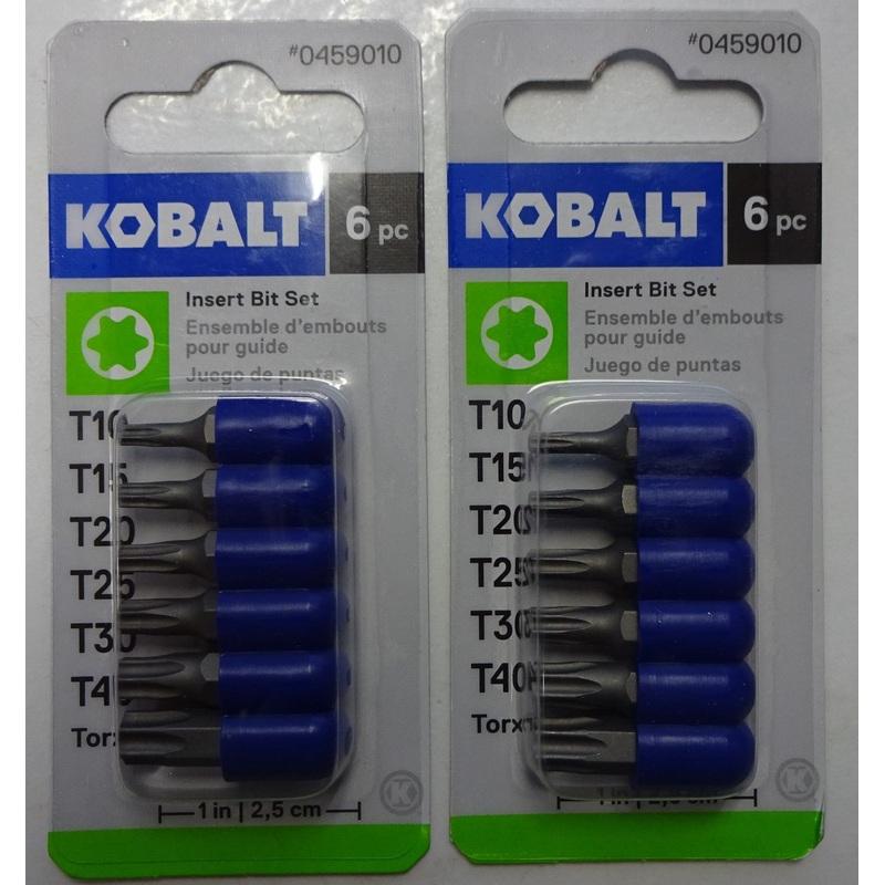 Kobalt 0459010 6-piece torx asst. Screwdriver bit set 2 packs of 6Include 2-6 packs with t10, t15, t20, t25, t30,t40 in each pack1873543