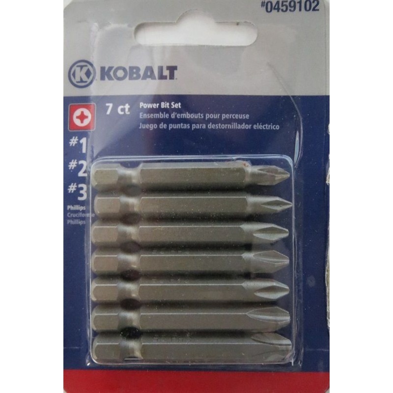 Kobalt 0459102 7 Piece 2" #1, #2, #3 Power Bit Screw Tip SetHigh-Grade S2 Tool Steel1/4 inch quick-change shank for use in all drills