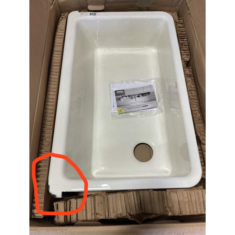 Kohler 6489-FF Whitehaven Undercounter Sink w/ Large Apron, Color: Seasalt, New-In Opened BoxNote: *Slight Enamel Damage As Seen In Pictures***FREIGHT** Buyer Responsible For All Shipping Costs and Logistics. Free Local Pick Up, Free Load Out Assistance Av