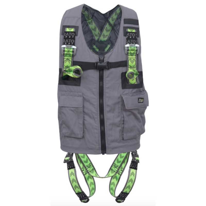 2 PointFull Body Harness withVest 2 Point Full Body Harness with Grey Polycotton Work Vest Attachments:1 sternal and 1 dorsal attachment point. Convenience:Fully adjustable vest, shoulder & thigh straps. shoulder, belt & lower part of thigh straps. Adjusta