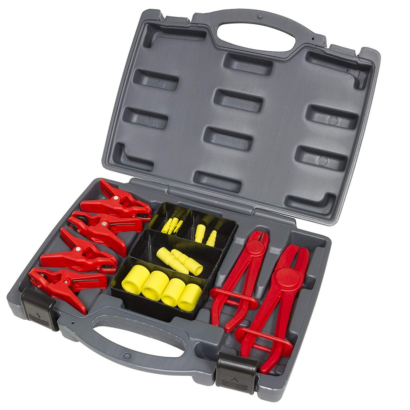 The Master Line Stopper Set provides coverage for many internal and external lines found on vehicles. Four different size stoppers for automotive flare type steel brake lines, power steering and transmission cooler lines. .Includes four stoppers to seal li