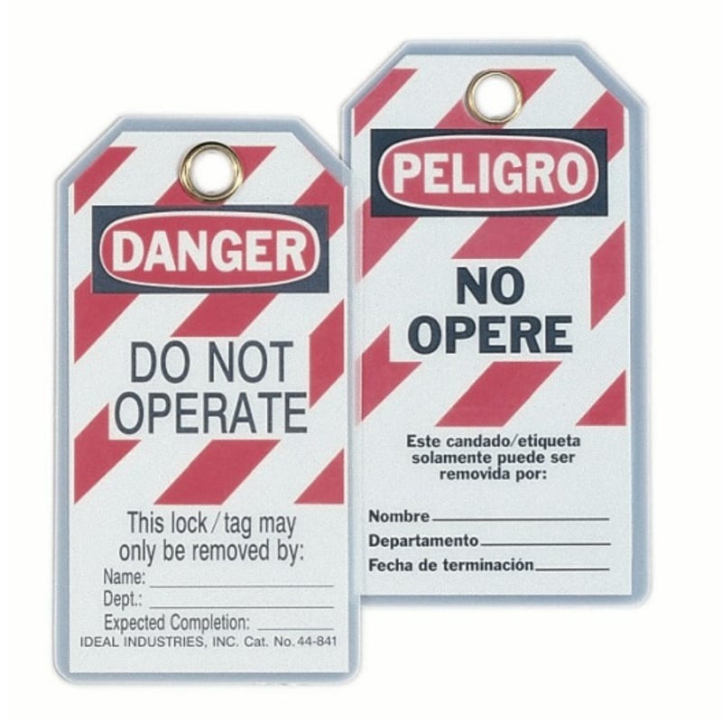 Lockout Tag, Bilingual, Message: "DO NOT OPERATE" Includes: (5).Color: RedType: Lockout TagMaterial: PlasticColor: RedColor: Red