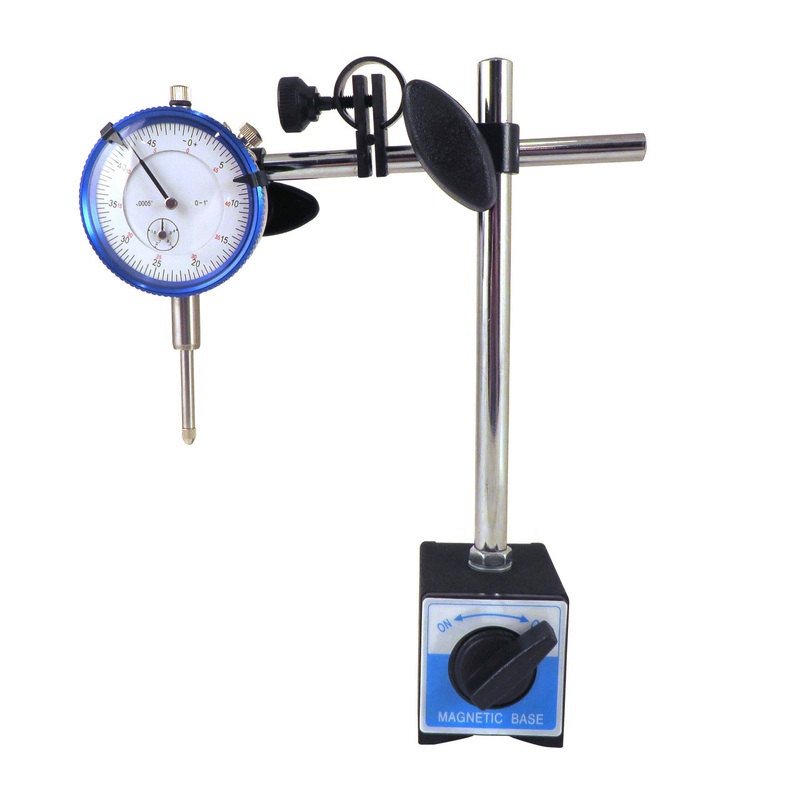 This is a magnetic base AND dial indicator.TEST INDICATORBody is made of machined anodized aluminum and NOT plasticVertical lug back configuration1" of total travel with graduations in 0.0005" (that's half a thousandth) per lineAccuracy guaranteed to 0.001