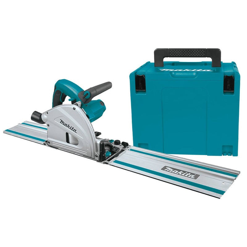 The Makita 6-1/2 Plunge Cut Circular Saw and 55 Guide Rail (model SP6000J1) work together to produce accurate cuts with minimal tear-out. The saw combines a powerful 12 AMP motor and a large cutting capacity with magnesium components for less weight, and electronic speed control to maintain constant speed under load for smooth cutting and a splinter-free mirror finish. The SP6000J1 is a more portable option to a table saw for select applications, and it is ideal for use on the jobsite or in a workshop.
