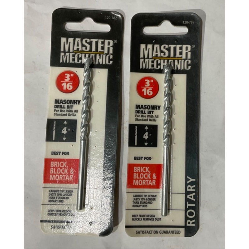 Master Mechanic 120 782 3/16″ Masonry 4″ Carbide Tip Rotary Drill Bit