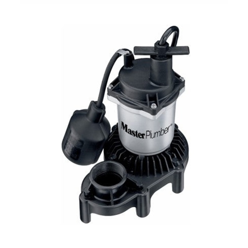 Master Plumber, 1/3 HP, Zinc & Plastic, Sump Pump, With Tethered Piggyback Style Float Switch, Performance: GPH 0' = 3,600, 5' = 3,060, 10' = 2,400, 15' = 1,680, 20' = 660, Max Lift 22', Corrosion Resistant Plastic Volute & Zinc Motor Housing, & Smooth Flo