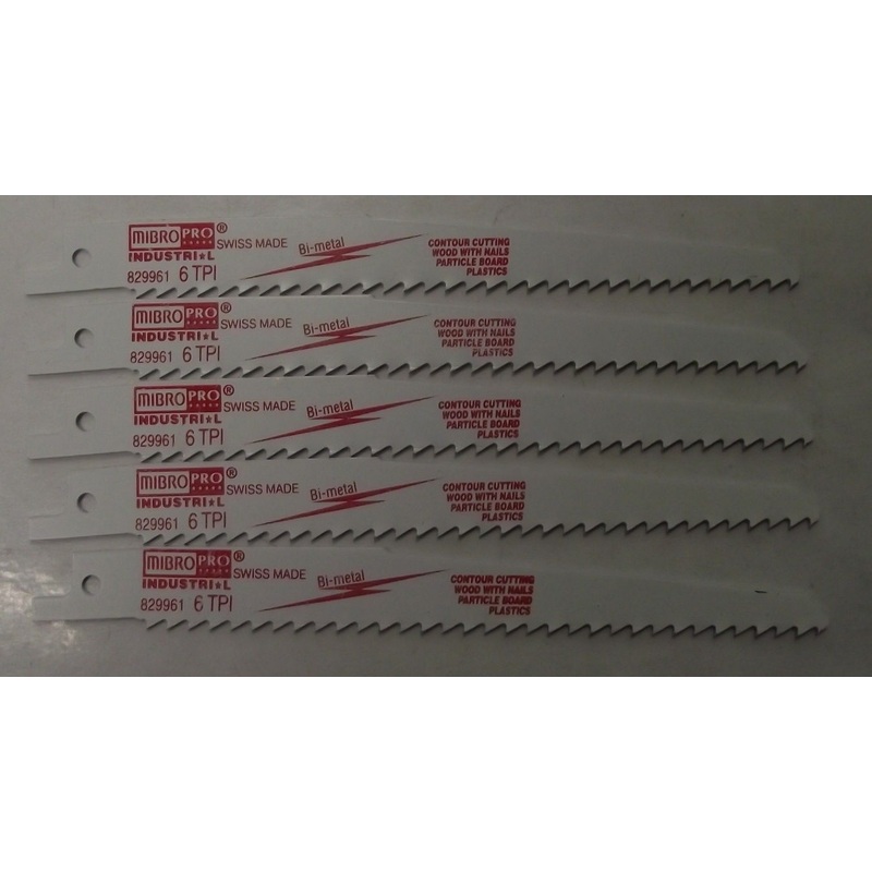 Mibro 829961 6″ x 6Tpi Bi Metal Wood Cutting Recip Blade 5pcs Swiss