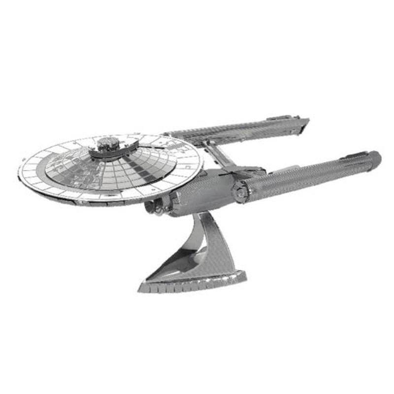 Assemble your own U.S.S. Enterprise from Star Trek: The Original Series with ease with this Star Trek: The Original Series U.S.S. Enterprise NCC1701 Metal Earth Model Kit from Fascinations! These amazingly detailed DIY models start as 4inch square steel sheets and finish as amazing 3D models. Use the easytofollow instructions included with the sheet to pop out the pieces bend the tabs and connect them at the attachment points! Build your own Enterprise from Star Trek: The Original Series with this awesome kit!
