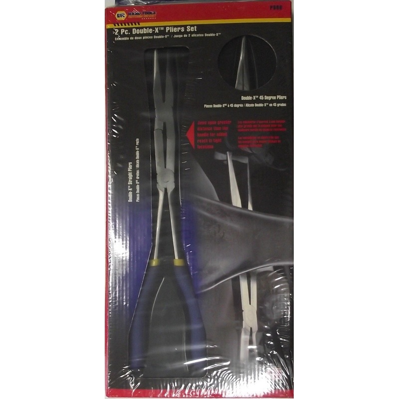 Napa P900 2PC. Double-X 45 Degree PliersSet includes 1- Straight Plier and 1- 45 degree plier.Jaws open greater than the handle for added reach in tight locations.Dual dipped handle for comfortCorrosion resistant alloy steel Flush riveted for strength and